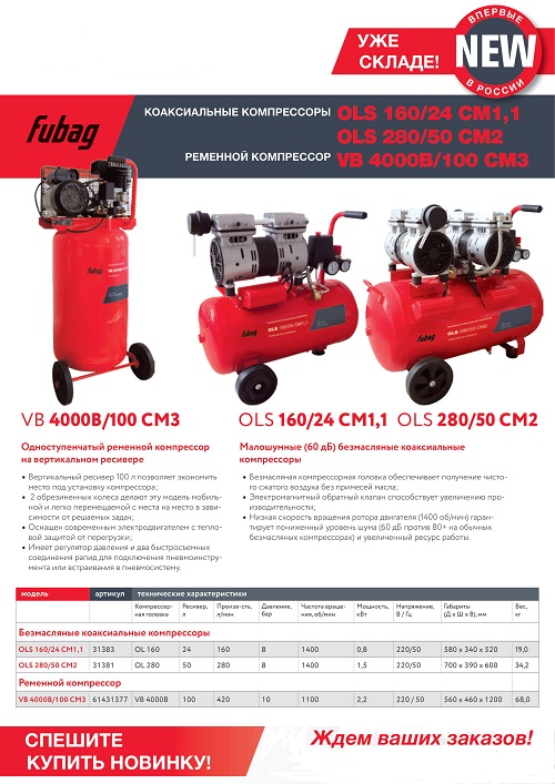 Уважаемые клиенты! Новинки коаксиальных компрессоров FUBAG уже в продаже!